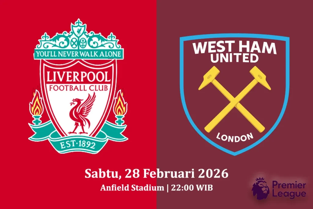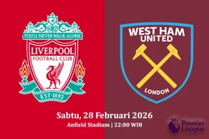 Beritanda.com – Lipervool vs West Ham akan digelar Sabtu, 28 Februari 2026 di Anfield Stadium dalam lanjutan Premier League. Tuan rumah memburu kemenangan kelima beruntun, sementara West Ham datang dengan ambisi mematahkan rekor buruk mereka di markas The Reds.