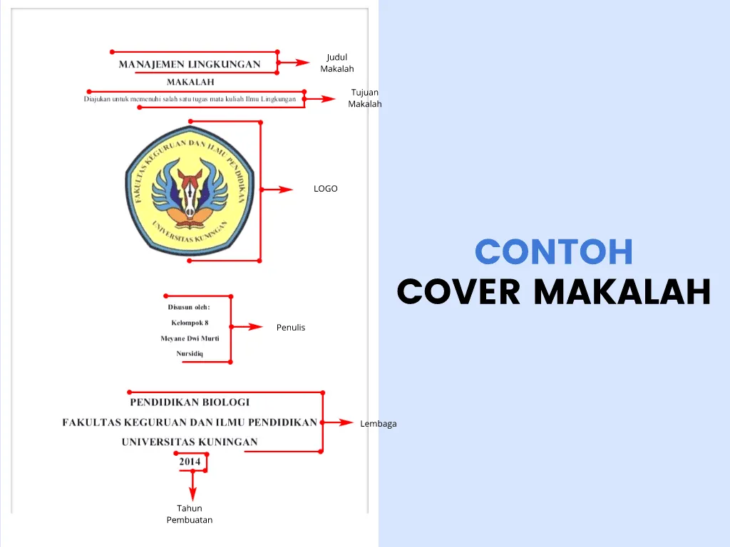 Setiap kampus atau lembaga biasanya punya pedoman sendiri. Namun, secara umum format cover makalah memuat beberapa elemen berikut: