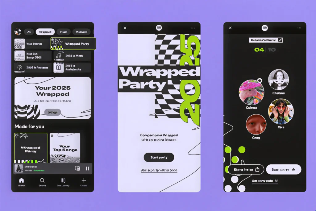 Salah satu sorotan pada Spotify Wrapped 2025 adalah kehadiran Wrapped Party. Untuk pertama kalinya, pengguna dapat merayakan Wrapped secara langsung bersama teman-teman.